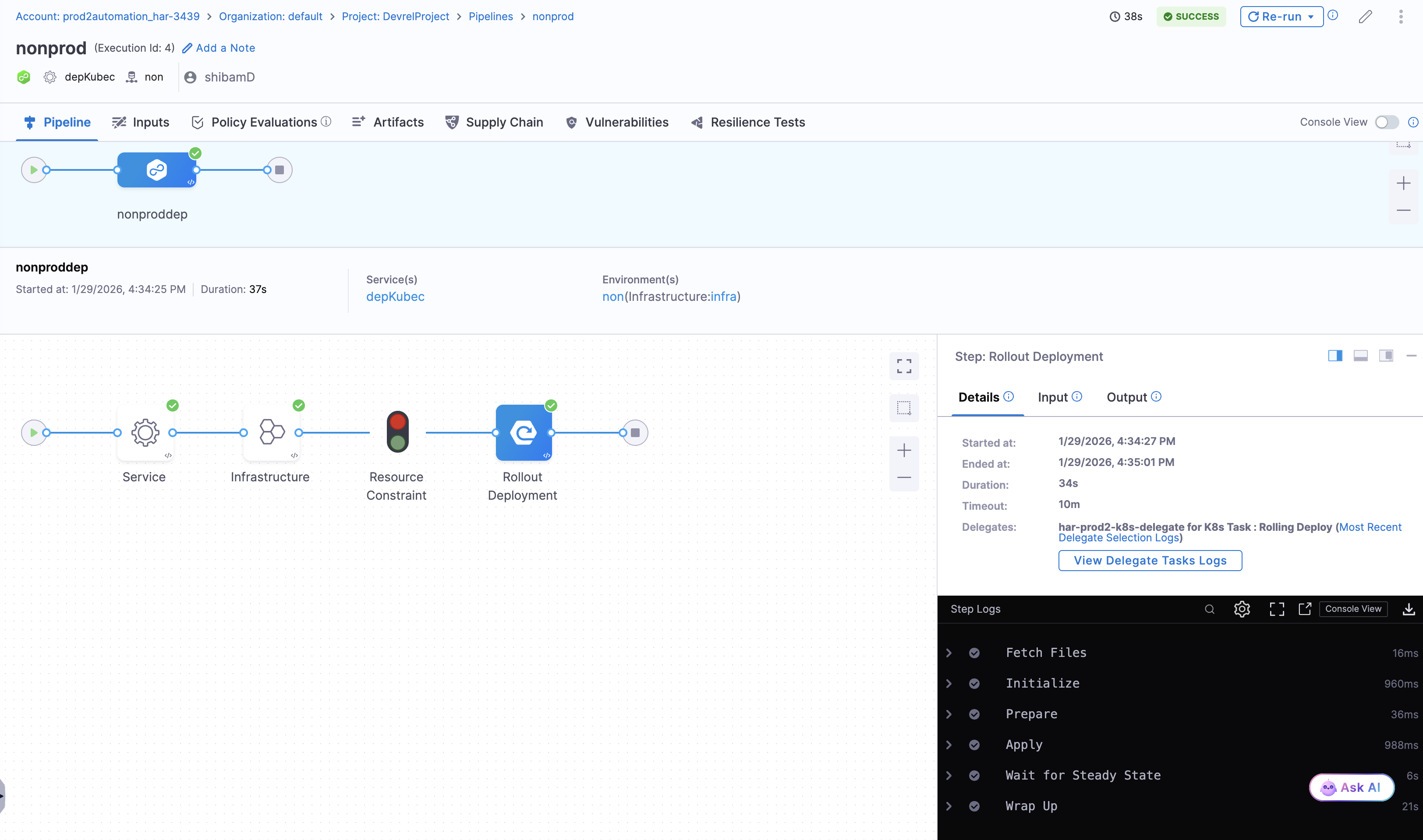 Once your CD service is configured with Harness Artifact Registry, the deployment pipeline automatically authenticates with HAR, pulls the specified artifact version, and deploys it to your target environment.