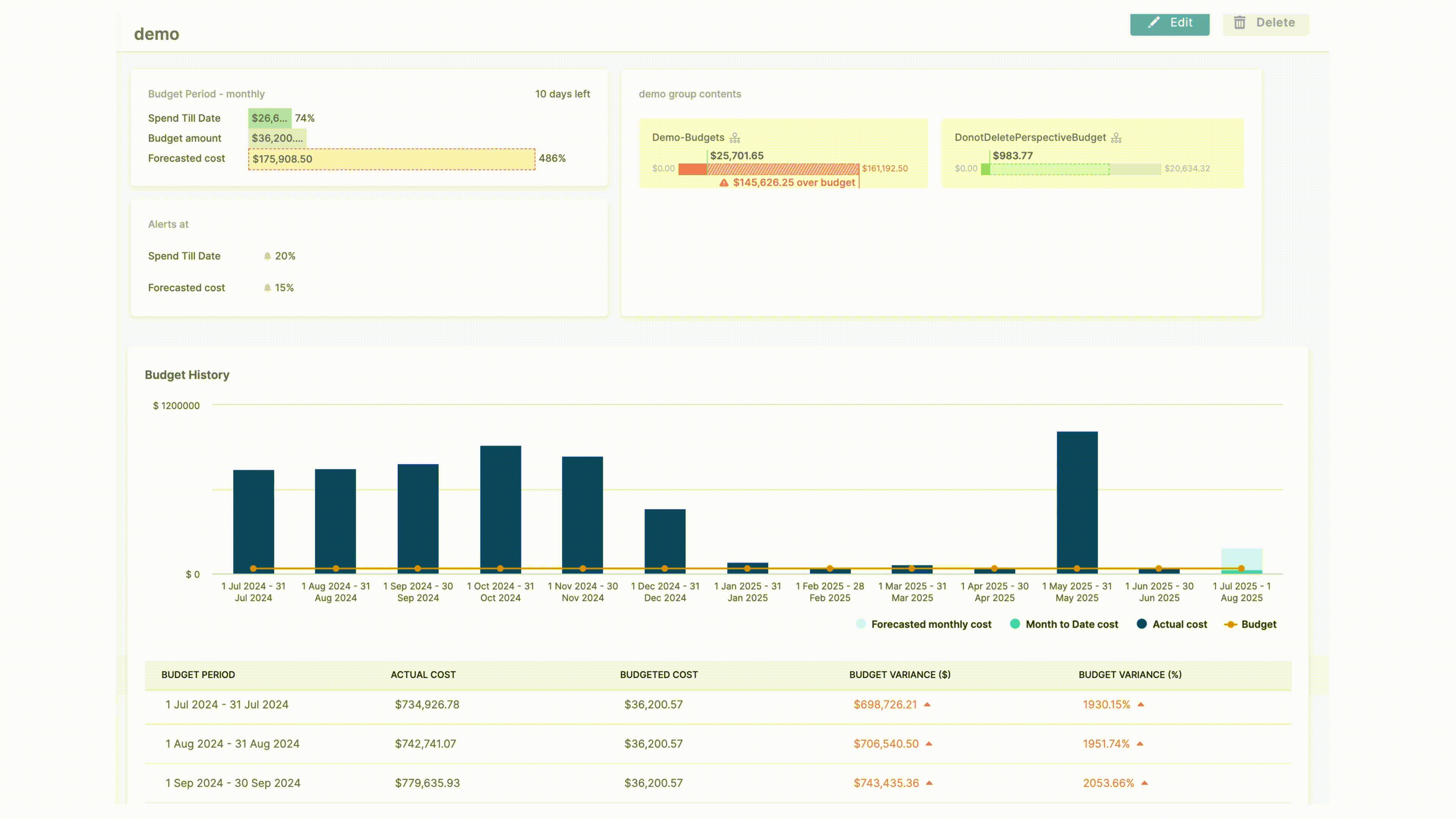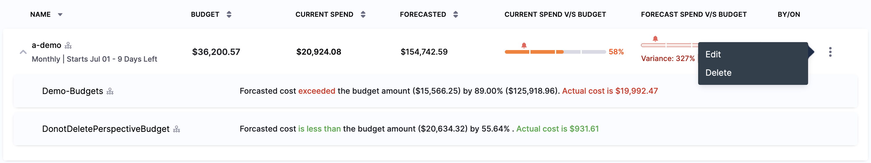 - Actual Cost: Real-time comparison of spending against your budget limit