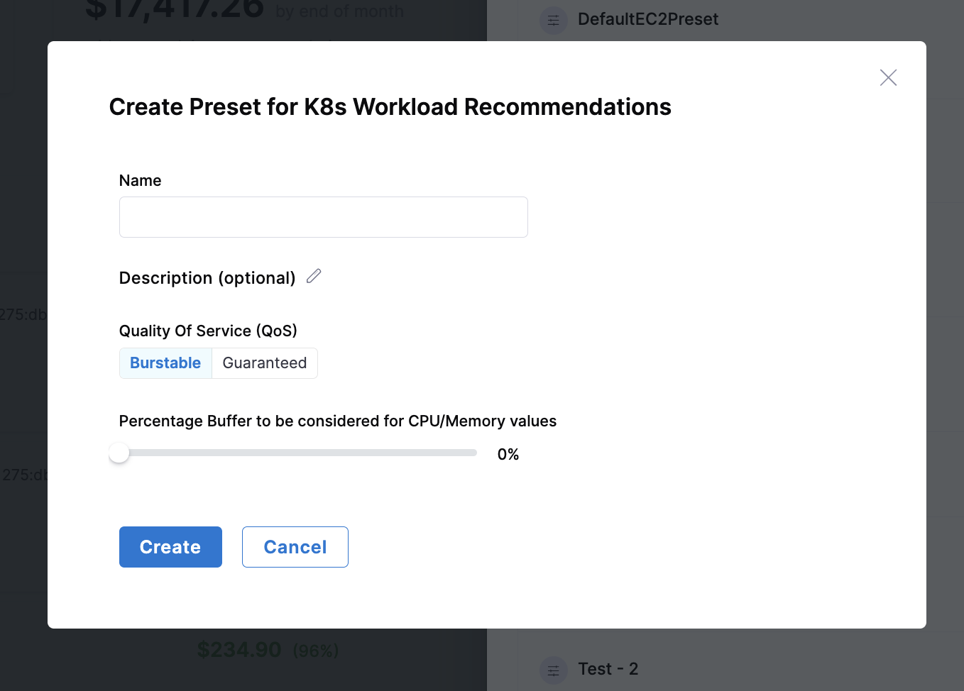 | Buffer Percentage | Additional resource margin to ensure containers have sufficient resources during peak usage. Helps prevent throttling and performance issues while maintaining efficient resource allocation. |