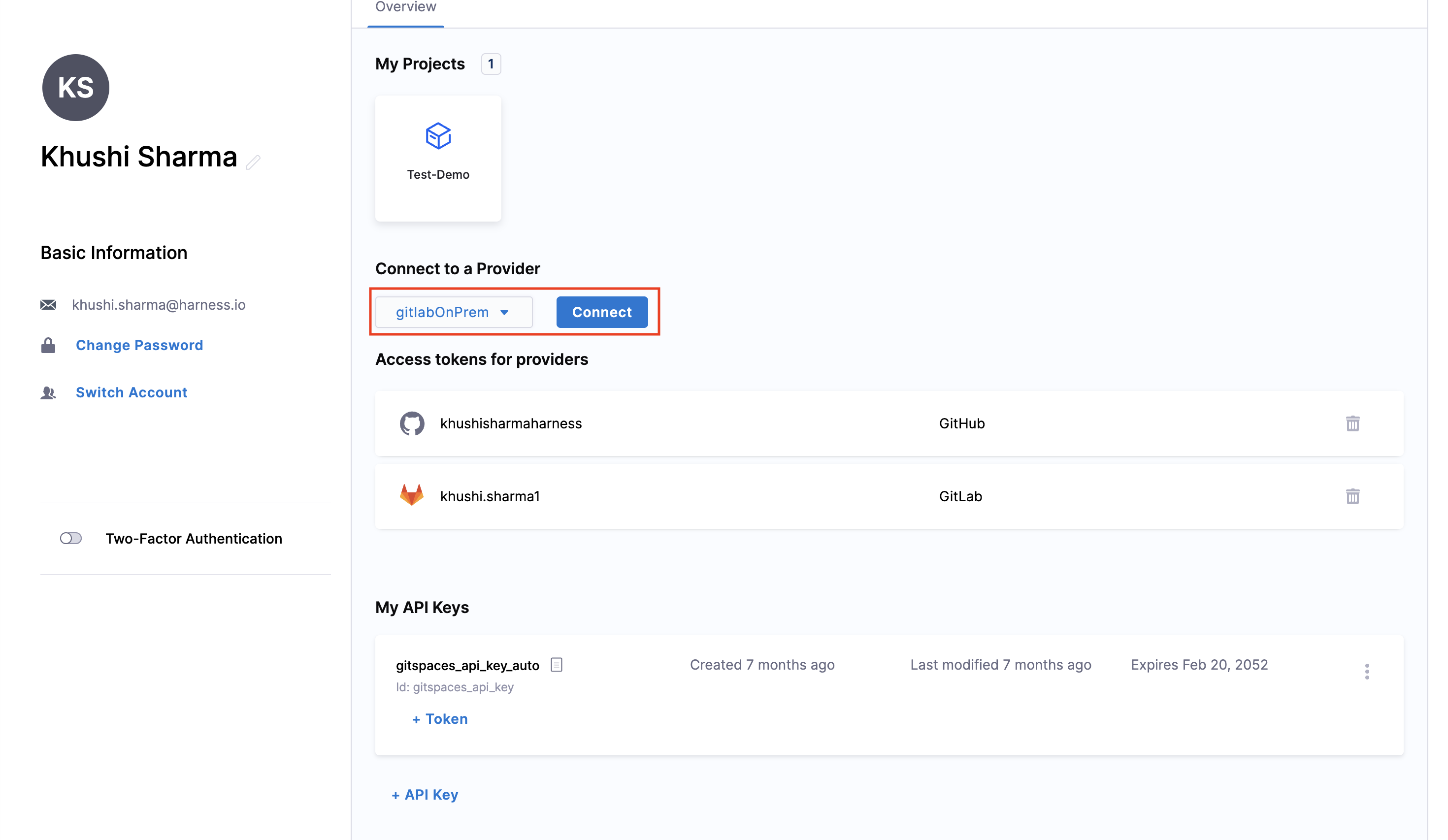 Once you've added the Git provider, configure OAuth for the same provider from your Profile Settings. This step is essential to authenticate your credentials for the provider.