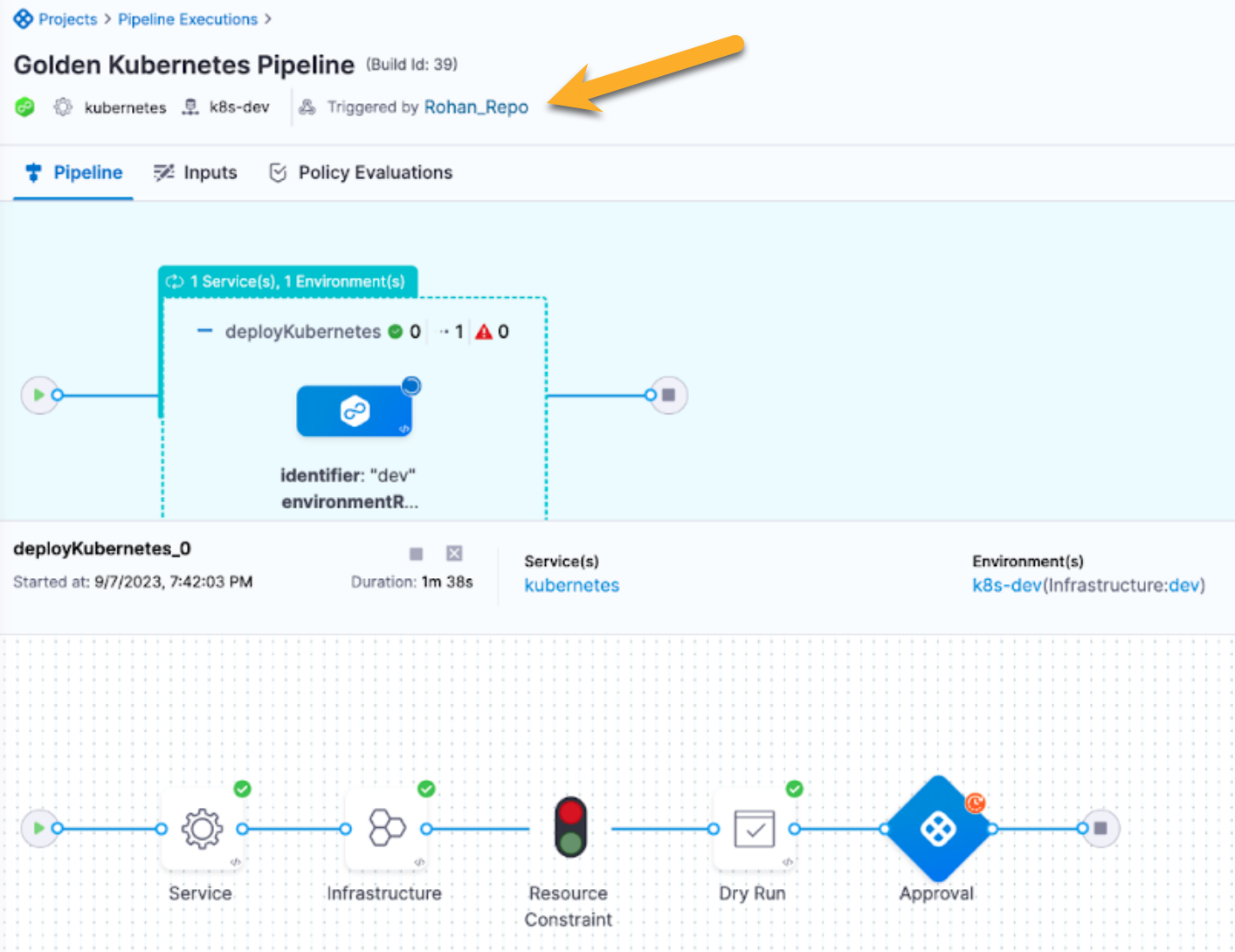 Here is the pipeline trigger in Harness.