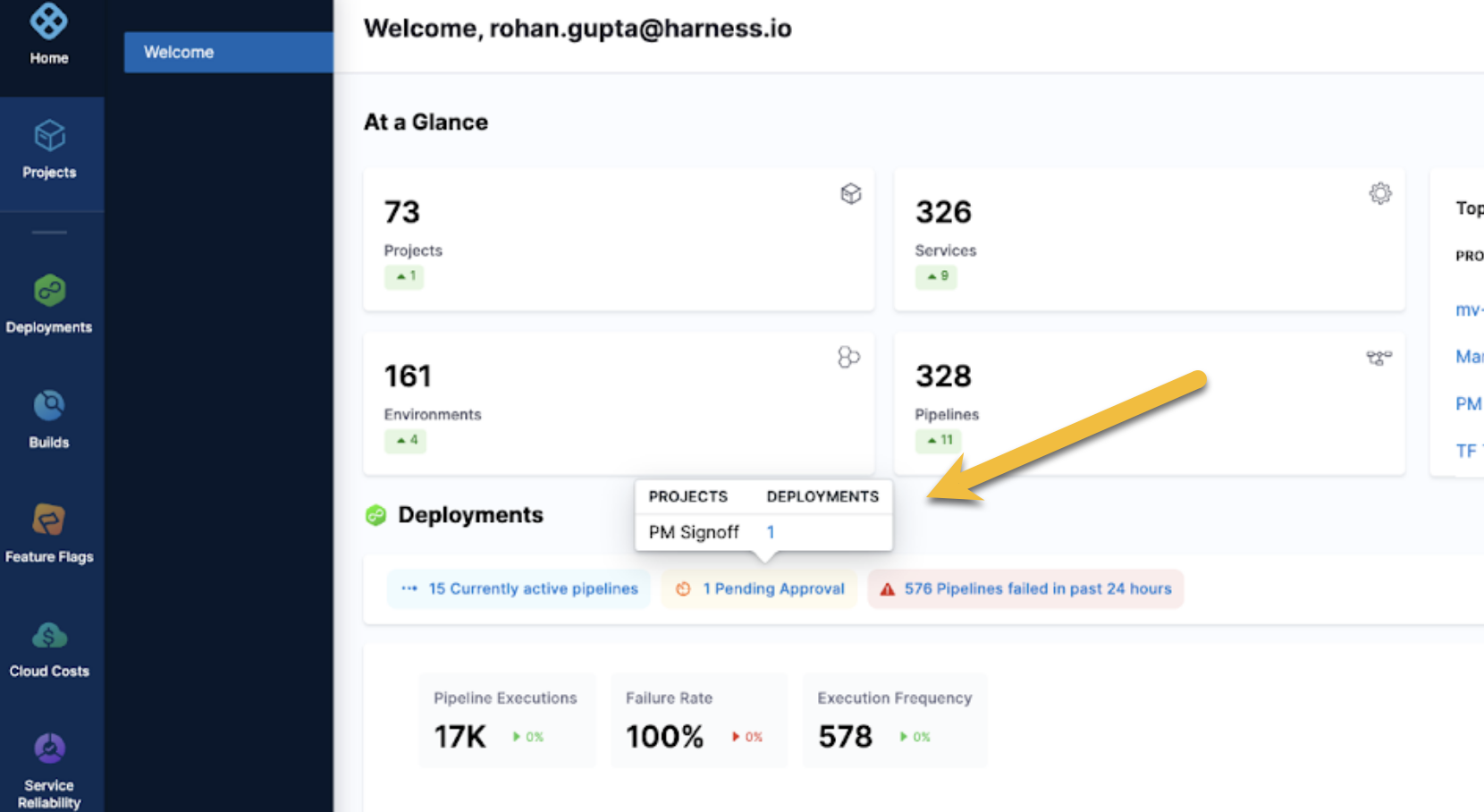 Depending on the project you have access to and the pipeline you have permissions to, a Harness user can log in and deploy a service using the Harness Manager UI.
