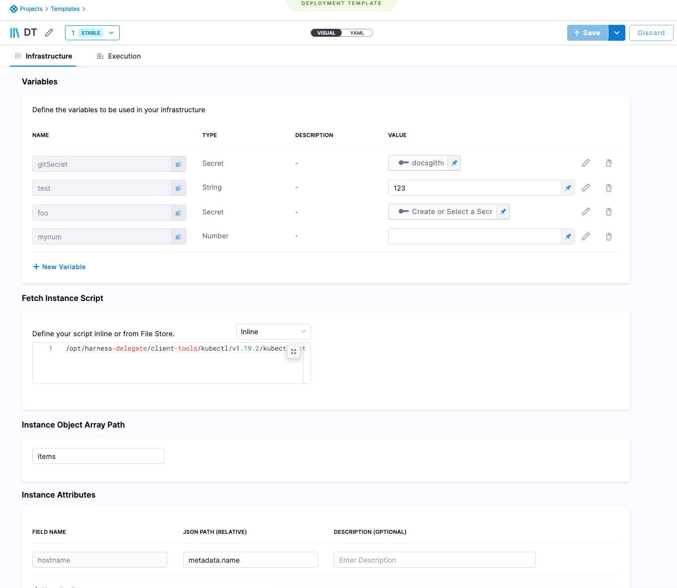 - In your Harness Pipeline stage Environment, create a Harness Infrastructure Definition that uses the Deployment Template.