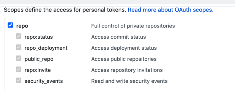 Ensure you PAT has the repo scope selected: