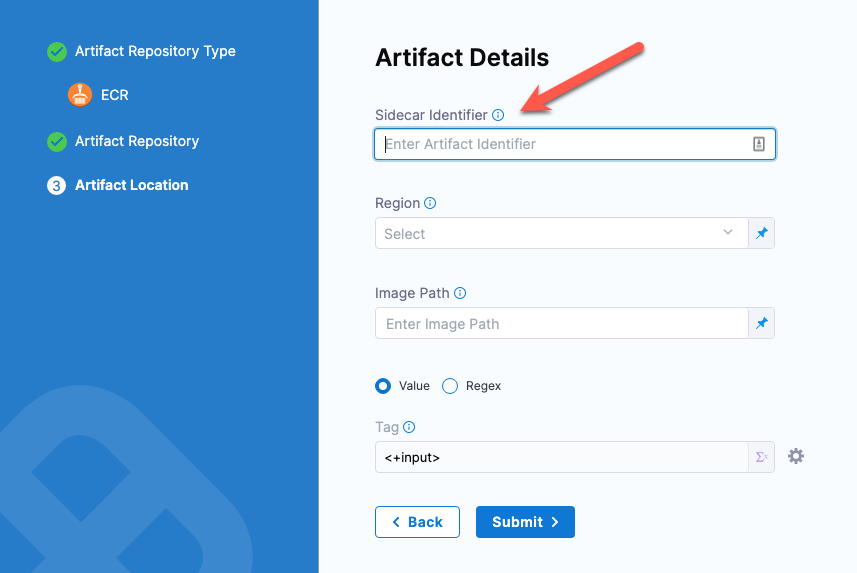 artifact: <+artifacts.sidecars.mysidecar>