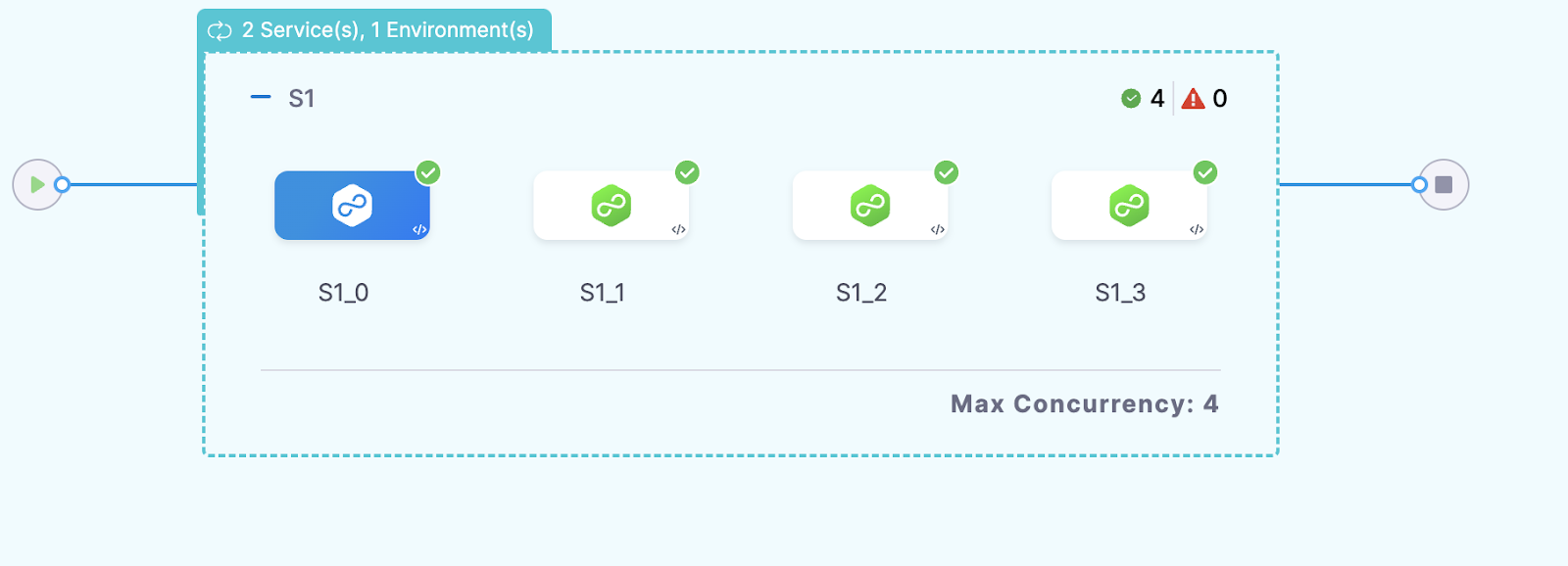 - After 1 (S1 I1) is deployed, then 3 (S1 I2) will be deployed sequentially (same service across different infrastructures).