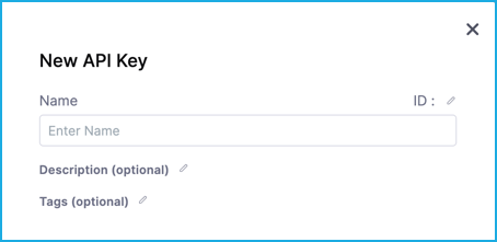 3. Enter a Name for the API key. Description and Tags are optional.