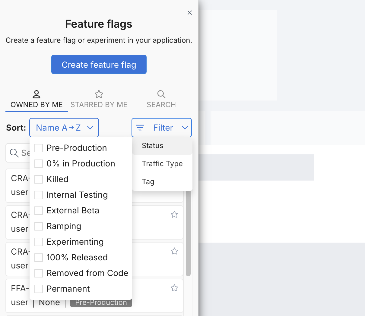 1. Select the feature flag you want to assign a new status to.