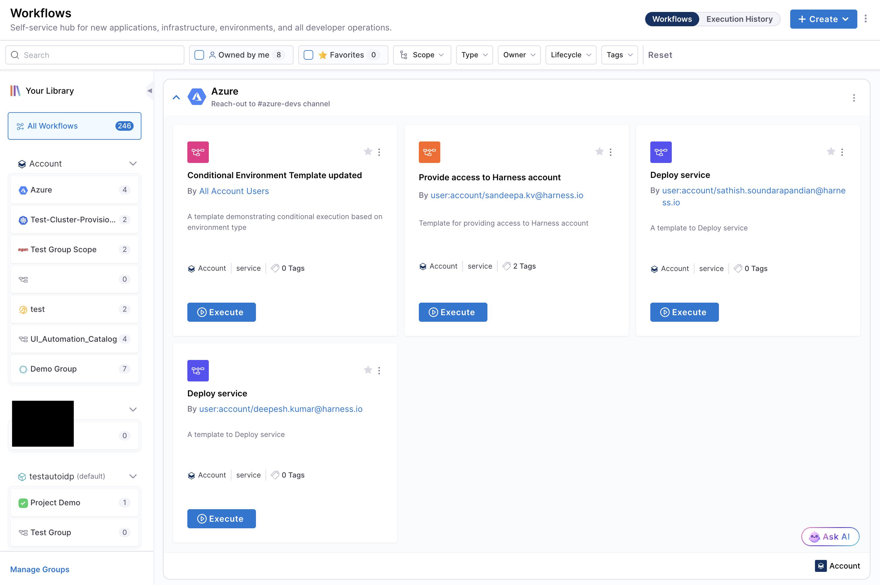 • Auto-import and populate Catalog from Git and Harness CD.