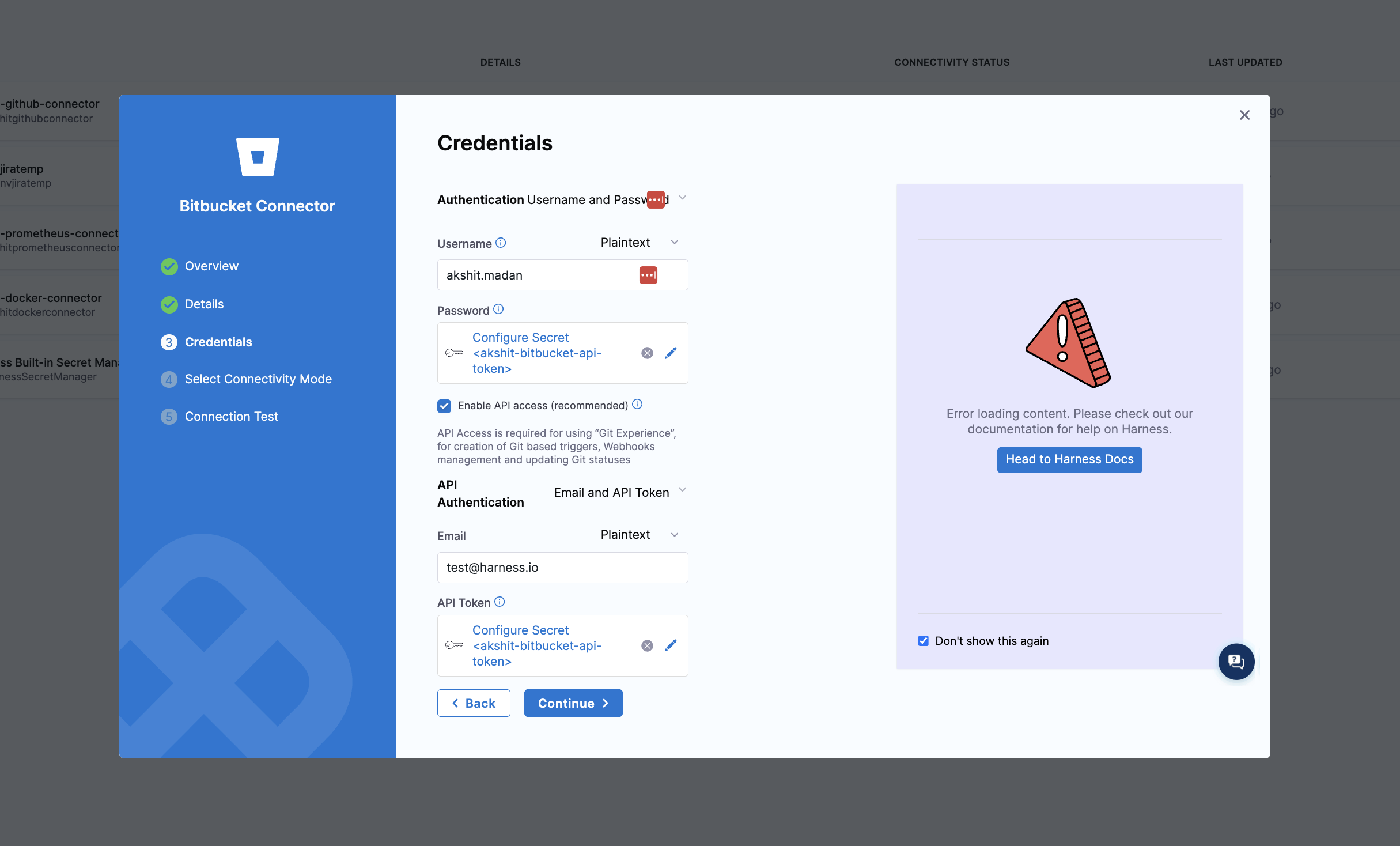 You must enable API access to use Git-based triggers, manage webhooks, or update Git statuses with this connector. If you are using the Harness Git Experience, this setting is required. API access allows authentication via multiple methods.