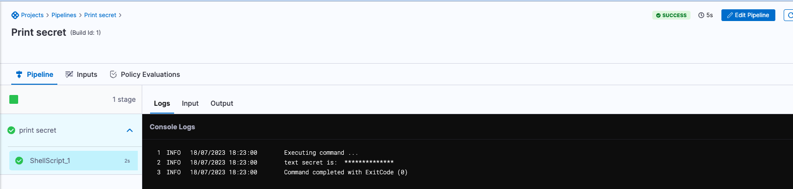 When a text secret is displayed in a deployment log, Harness substitutes the text secret value with asterisks (*) so that the secret value is never displayed. For more information, go to secrets and log-sanitization. The only exception is output variables. If an output variable value contains a secret, be aware that the secret will be visible in the build details. For more information, go to output variables.