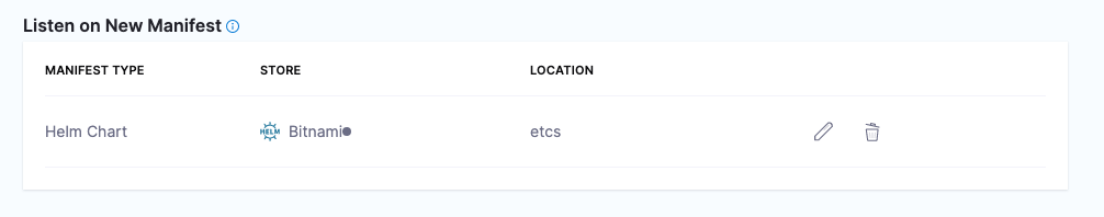 4. Select the Helm Chart trigger listed under Manifest. The On New Manifest Trigger settings appear.