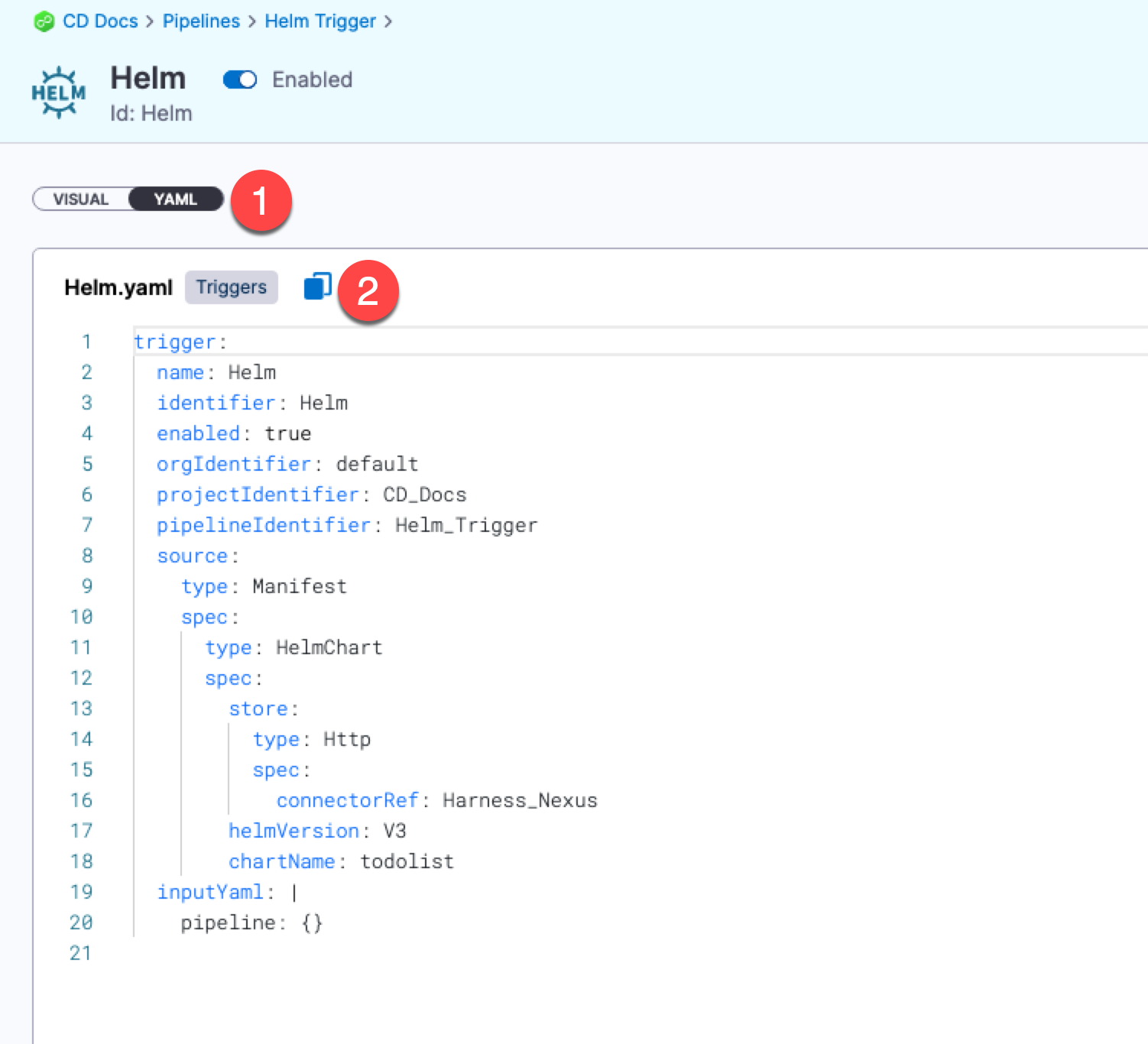 The Helm chart is added to the trigger. Now Harness will poll that Helm chart for any changes.