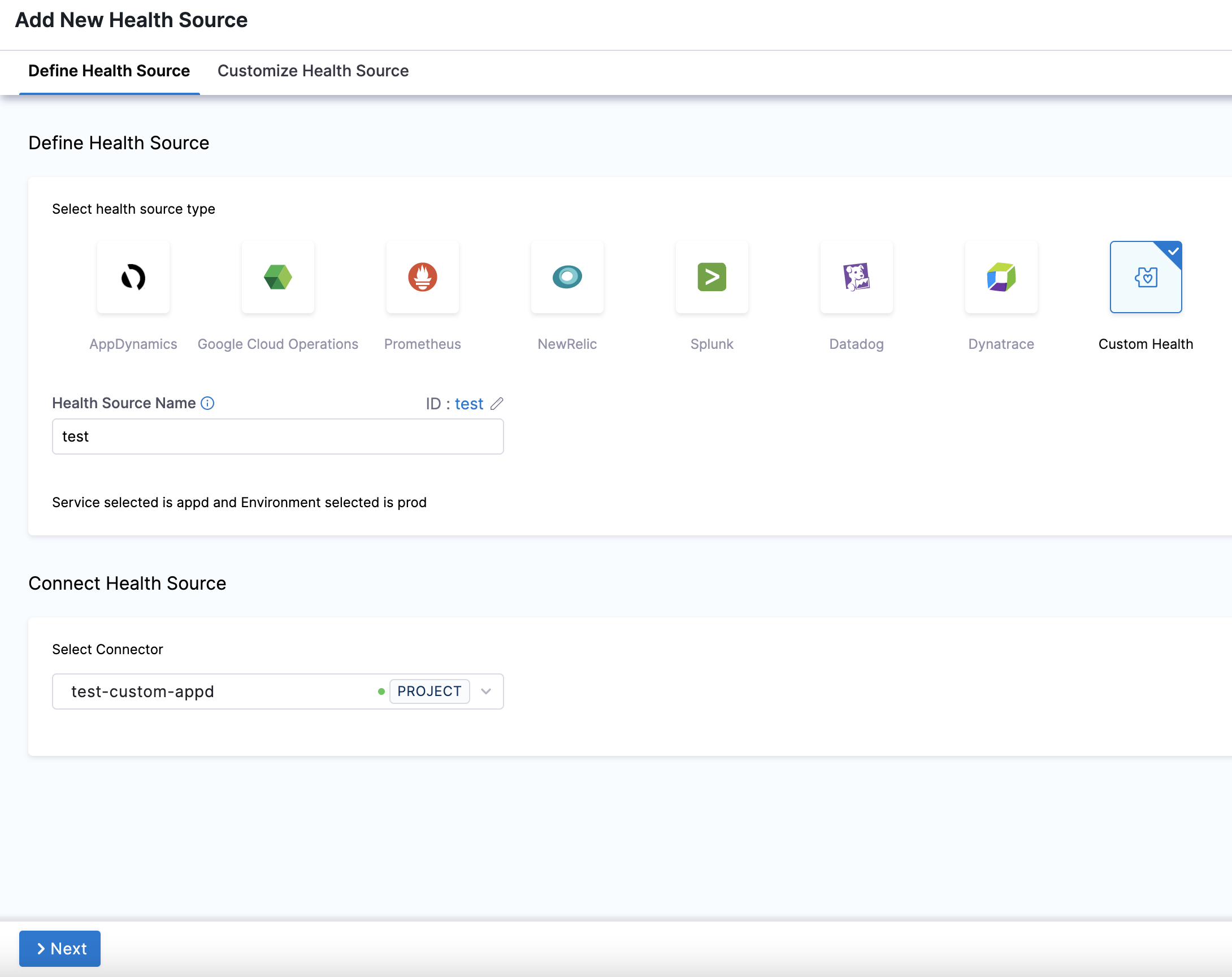 3. Go to the Service tab, and under Define Your Sources, select + Add New Health Source.