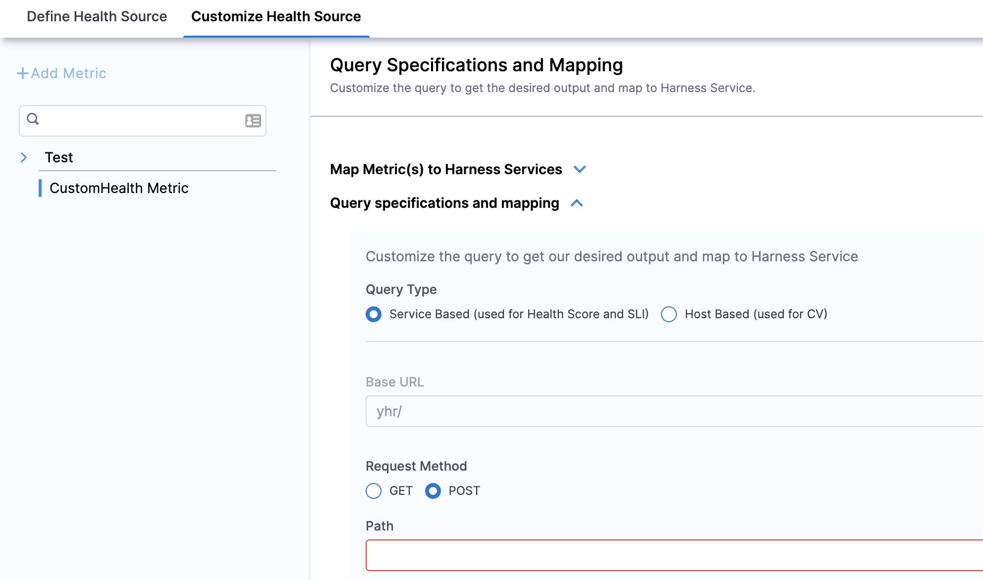 1. If you select Custom Health Metrics, the Customize Health Source settings appear as: