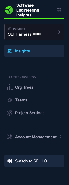 To return to the SEI 1.0 experience, click Switch to 1.0 below Account Management in the Harness SEI navigation menu.