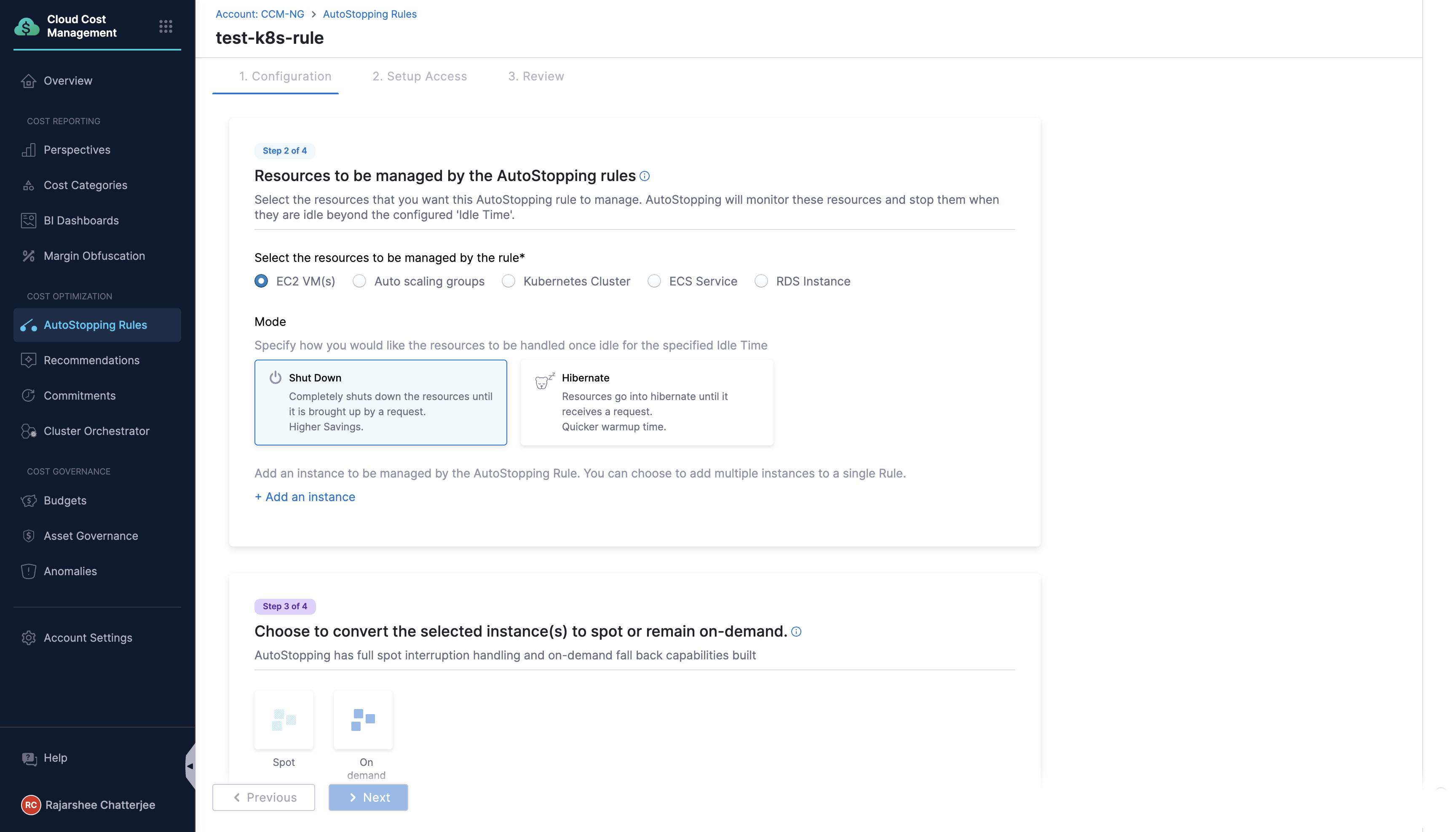 New SP roll-down policy option in Commitment Orchestrator renewals You can now configure a roll-down percentage to control how much of an expiring Savings Plan commitment is renewed during setup. [CCM-27577]