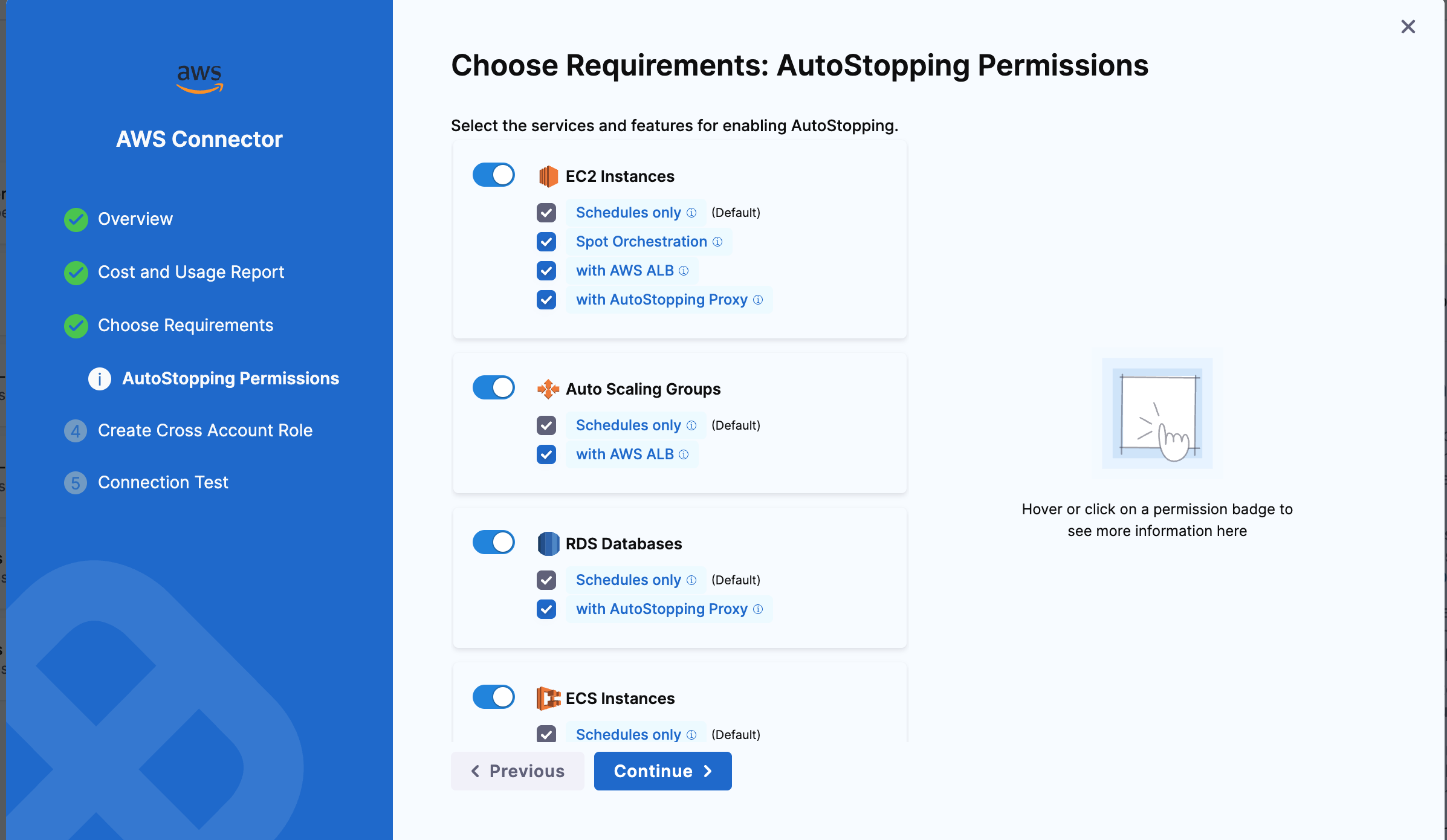 As part of Azure Connector validations for Inventory and AutoStopping, we're now checking whether the service principal has the required roles for these features: Reader role for Inventory and Contributor role for AutoStopping. These checks will run whenever